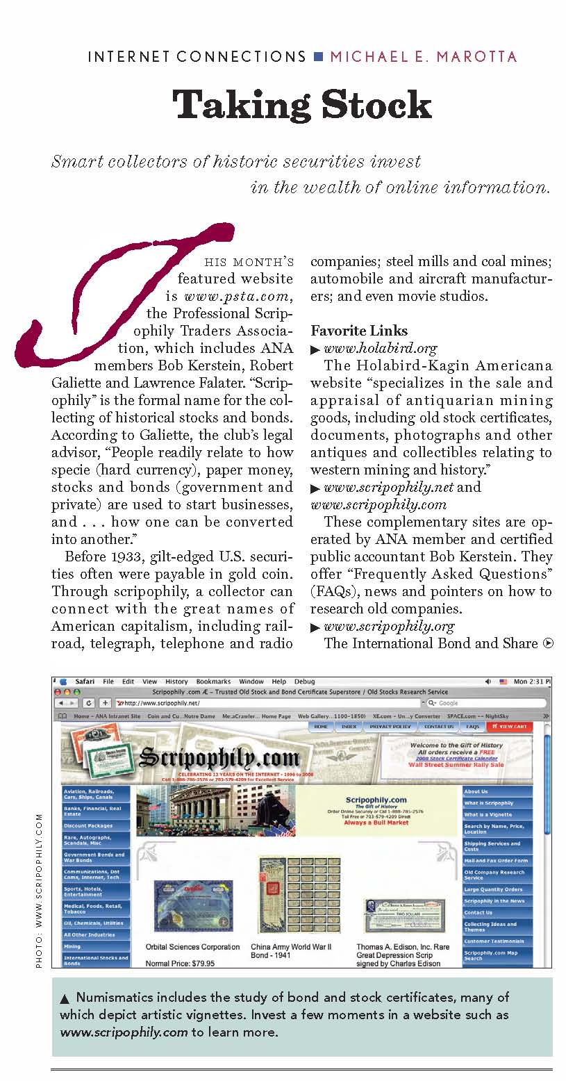 21, 2009)Scripophily.com offering